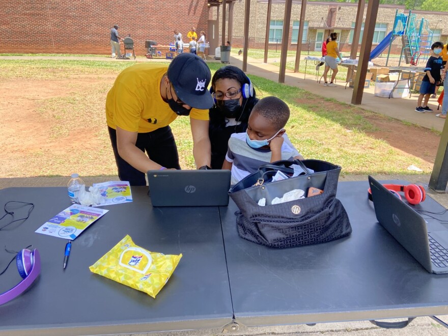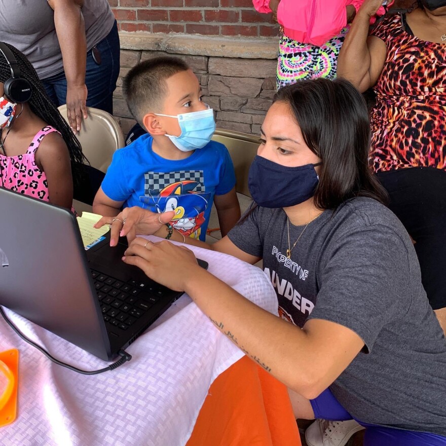 Last year she and her team set up outside grocery stores and gas stations to reach families who were trying to teach their kids from home. They passed laptops through car windows and helped people use their smartphones to log on.